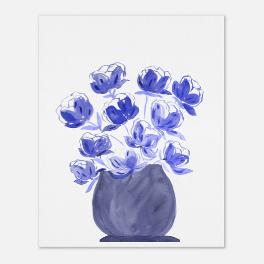 Blue Peony Hand-Painted Watercolor Floral Bouquet Art Print - Minimal Style Decor