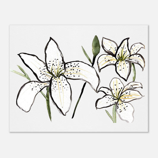 Black & White Tiger Lily Hand-Painted Watercolor Print – Bold Floral Art for Maximalist Decor