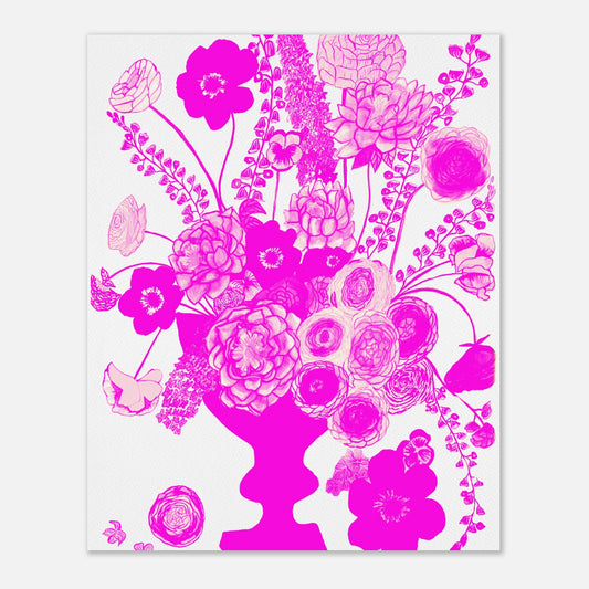 Chinoiserie Floral Bouquet Art Print – Handpainted Bright Pink Watercolor Decor