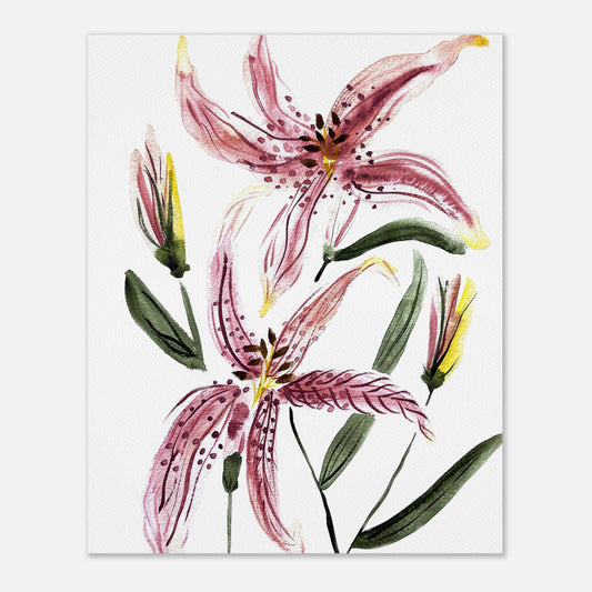 Pink Tiger Lily Hand-Painted Watercolor Print – Bold Floral Art for Maximalist Decor