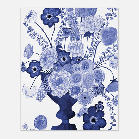 Chinoiserie Floral Bouquet Art Print – Handpainted Navy Blue Watercolor Decor