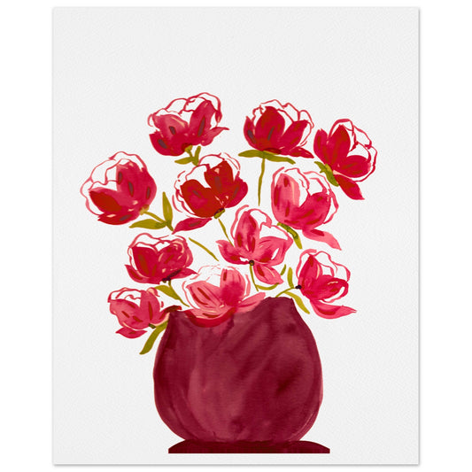 Red Peony Hand-Painted Watercolor Floral Bouquet Art Print - Minimal Style Decor