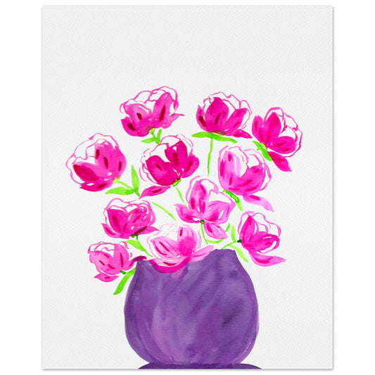 Chinoiserie Floral Bouquet Art Print – Handpainted Bright Pink Watercolor Decor