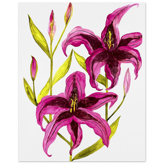 Magenta Lily Hand-Painted Watercolor Print – Bold Floral Art for Maximalist Decor