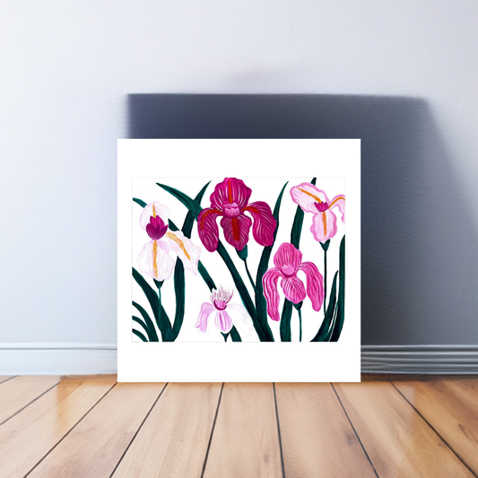 Chinoiserie Style Pink Lily Hand-Painted Gouache Print – Vibrant Fine Art Poster